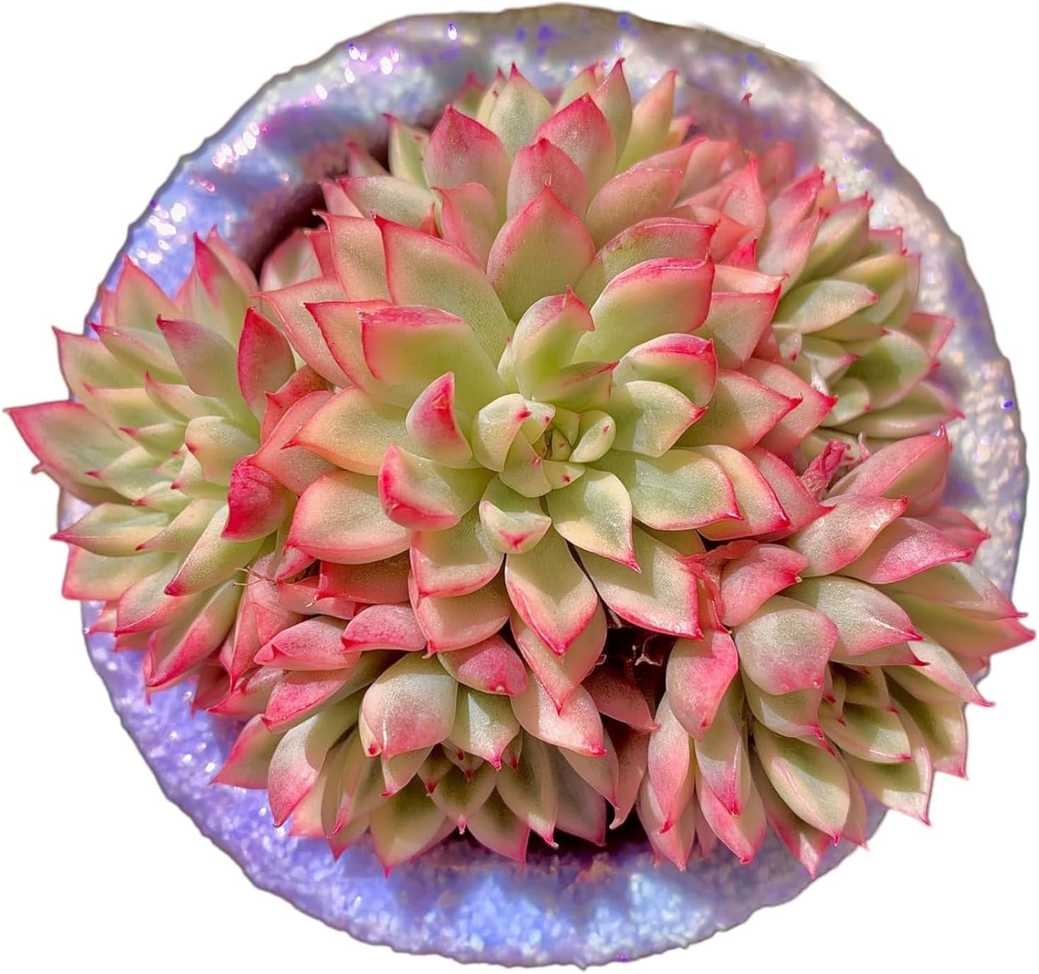 • Live Houseplants - The leaves of Echeveria 'Mebina' Variegata are long-spoon-shaped and closely arranged in a rosette shape. The whole plant is relatively small and tends to cluster. Over time, it can form a relatively spectacular clustered state, It is a highly ornamental live plants indoor.