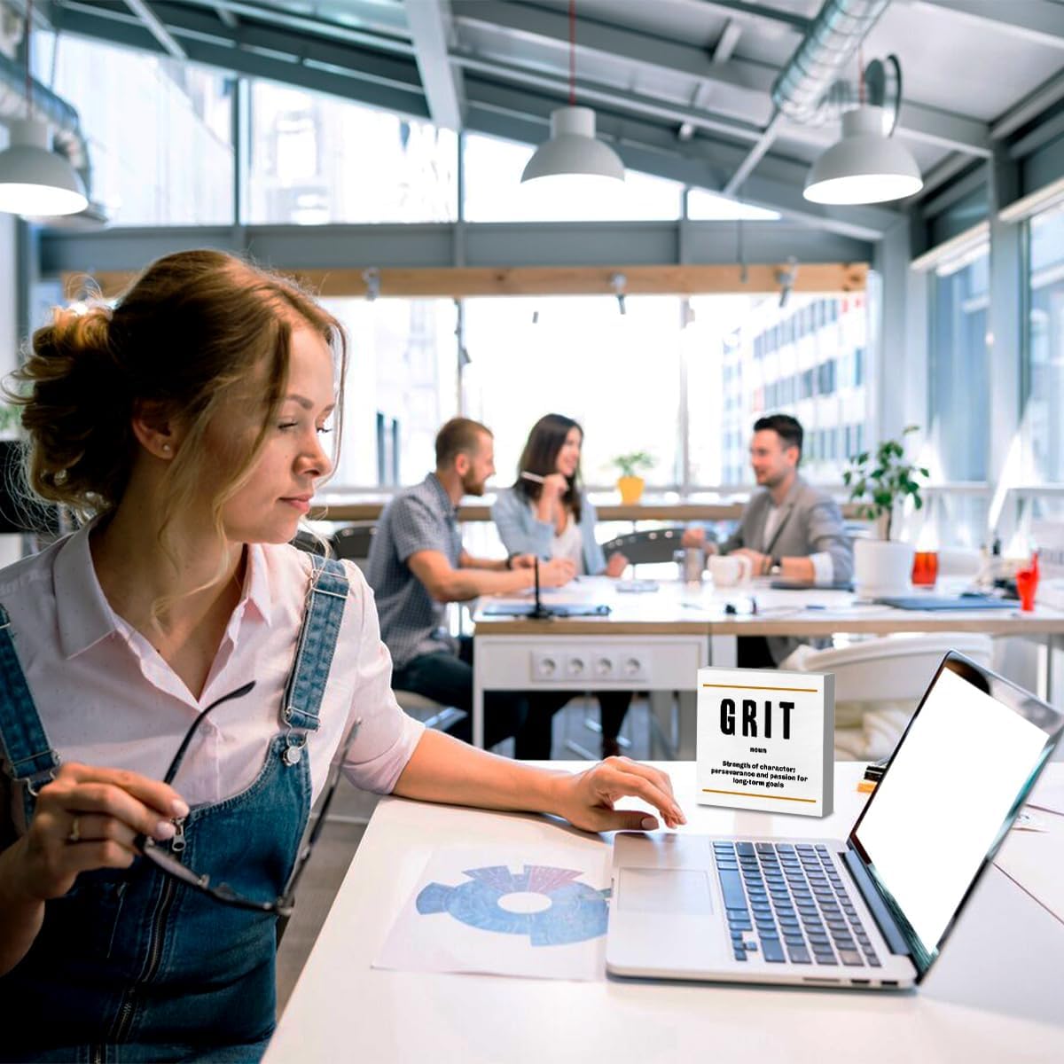 Grit Noun Entrepreneur White Wooden Box Sign, Inspirational Office Decor Decorative Table Shelf Desk Decor, Rustic Workplace Farmhouse Home Bedroom Classroom Decor Office Decorations Desk Accessories
