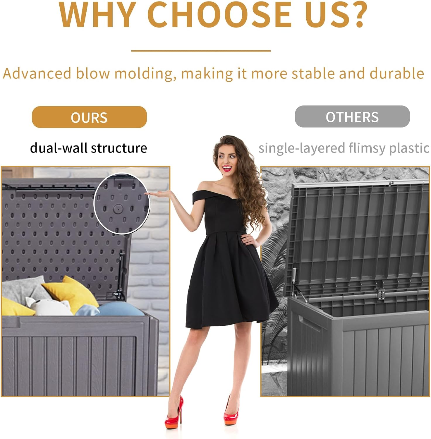 • Spacious 130 Gallon Deck Box Waterproof for Versatile Storage:Our expansive deck box waterproof provides ample space for all your indoor and outdoor storage needs, making it a pool storage box for large cushions, tools, sports equipment and pool supplies.