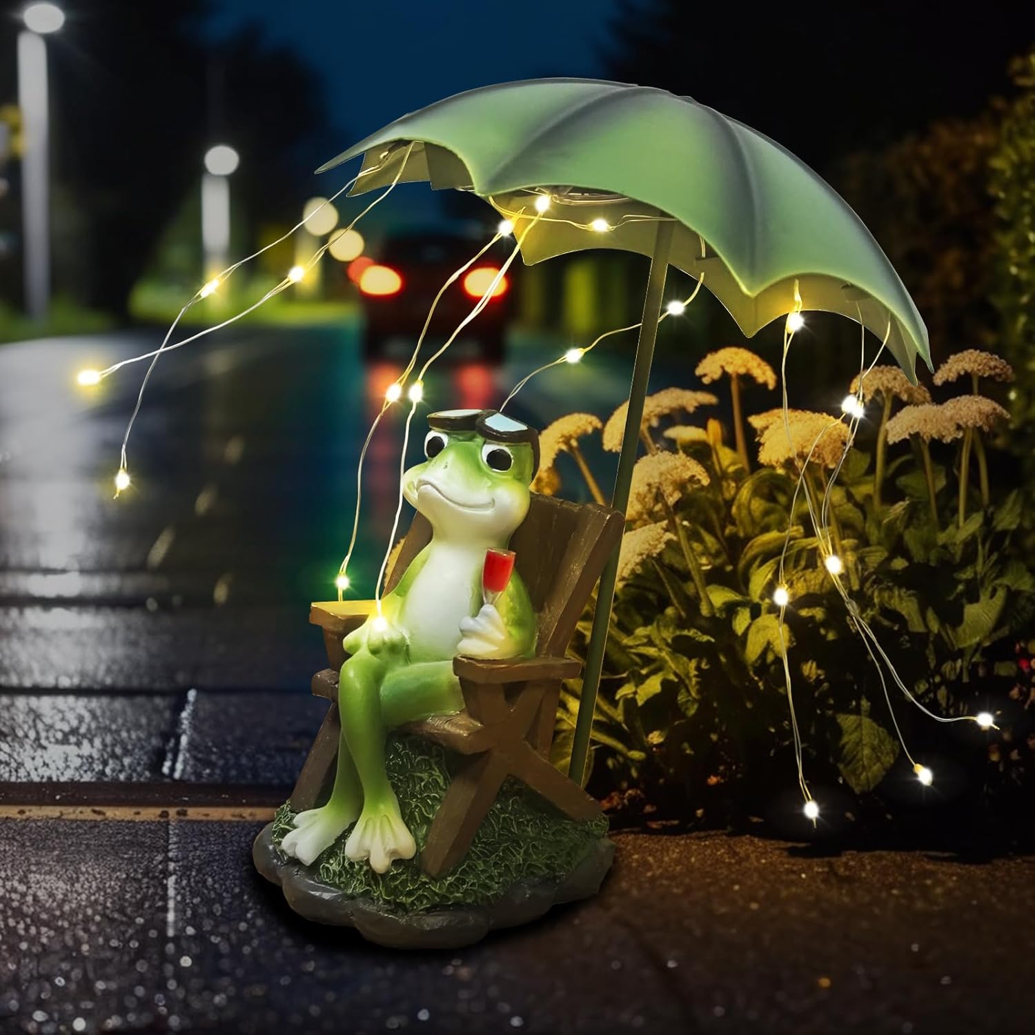 Solar Frog Outdoor Garden Statues Yard Decor - Solar Lantern LED Red Wine Frogs Umbrella Figurine with Lights Waterproof, Animal Statue Decoration Ornaments for Patio/Lawn Balcony/Backyard/Home