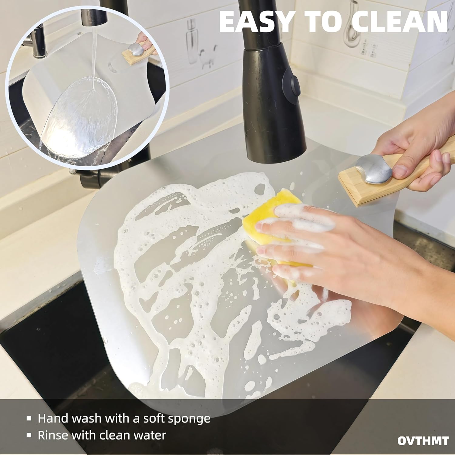 • EASY TO CLEAN: Our 12" pizza peel is easy to clean after use. Just hand wash with a soft sponge and rinse with clean water. The aluminum pizza peel is rust-resistant, and it is an ideal pizza spatula paddle for oven.