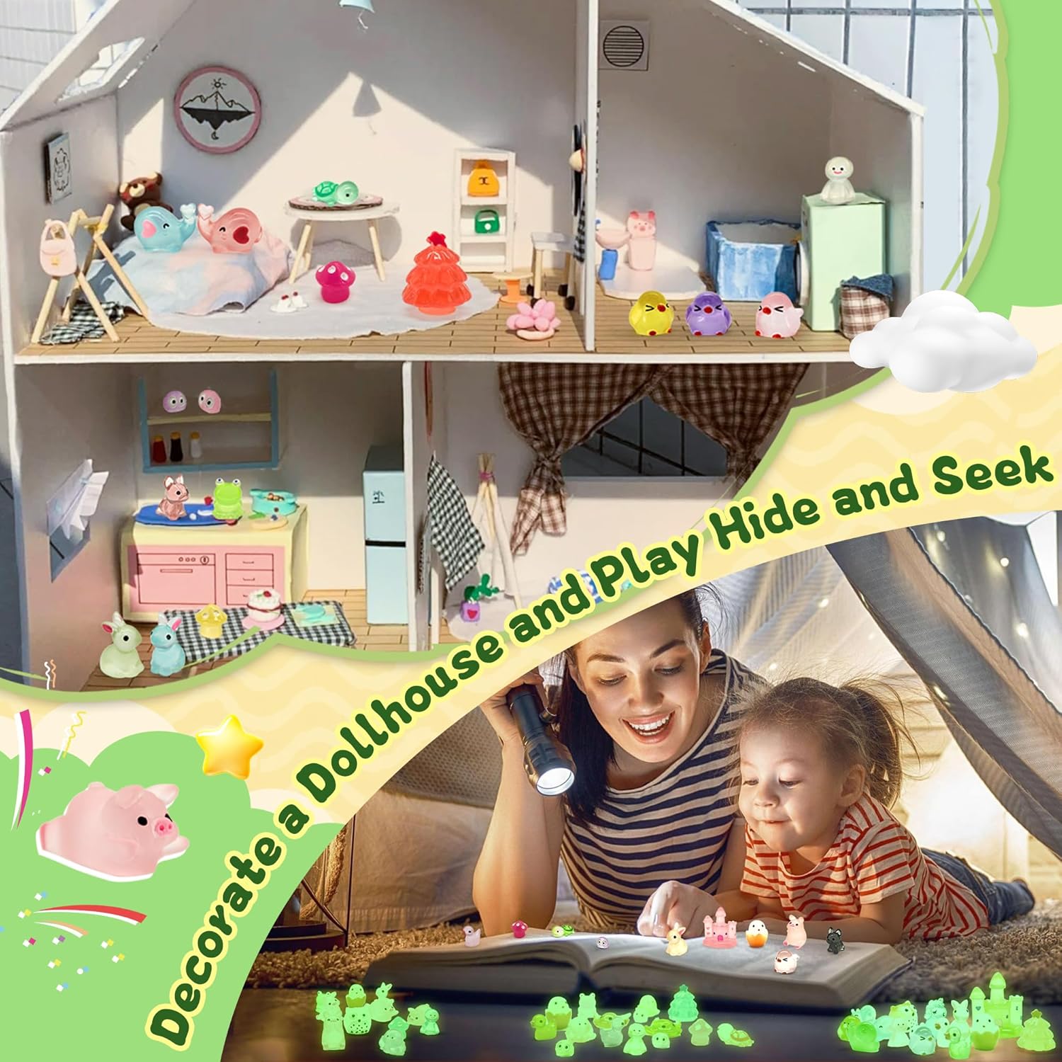 • GLOW IN THE DARK - Each tiny animal figurine is designed to absorb light and emit a soft, enchanting glow in the dark, gently illuminating a magical ambiance. Whether placed in your garden, on a shelf, or nestled among potted plants, these figurines enhance your decorating efforts, ensuring they shine brightly both day and night, adding a magical surprise to hidden corners of your garden or fairy world. And they are perfect for hide and seek games with kids.