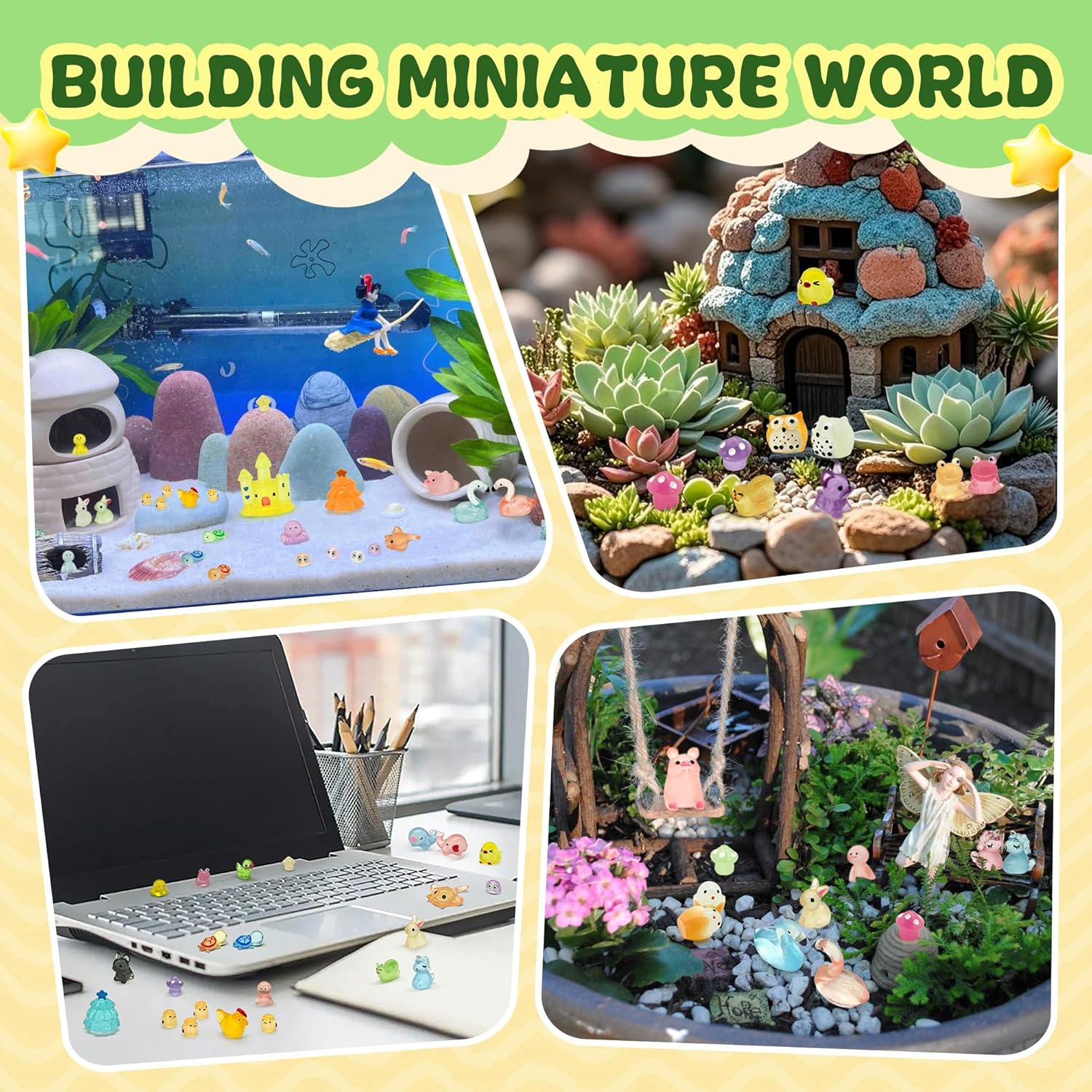 • VALUE AND VARIETY - This extensive pack of tiny resin animals offers exceptional value and variety. It is featuring a diverse array of animals and creatures, featuring adorable designs including tiny dinosaurs, unicorns, snails, frogs, puppies, baby elephants, flamingos, bunnies, turtles, chicks, octopuses, ray, mushrooms, little figurines, mini ducks, fir trees and ice castles, providing ample options for decorating your dream world, ensuring a rich and imaginative collection.