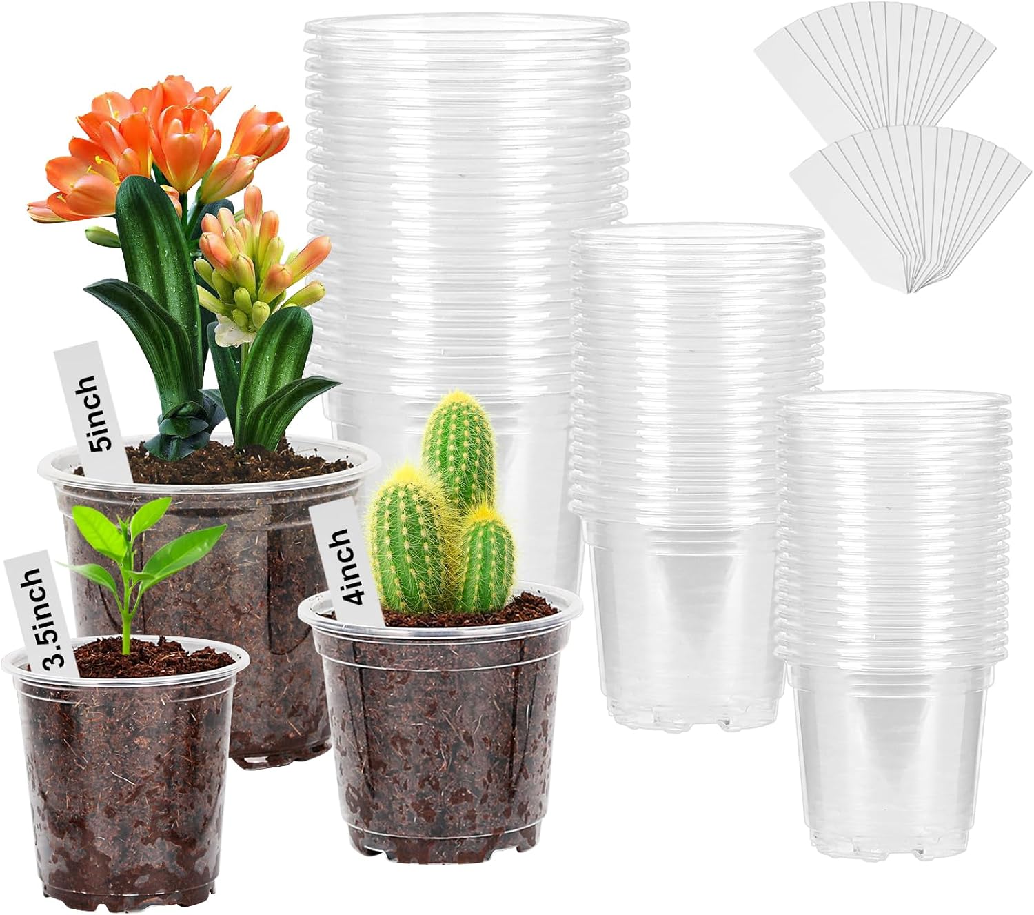 • Package Include: You will receive 60 pack clear plastic pots in different sizes ,includes 20pcs 3.5" plant pots, 20pcs 4" plant pots, 20pcs 5" plant pots, and 50 plant labels giveaways. Notice : plants are not included