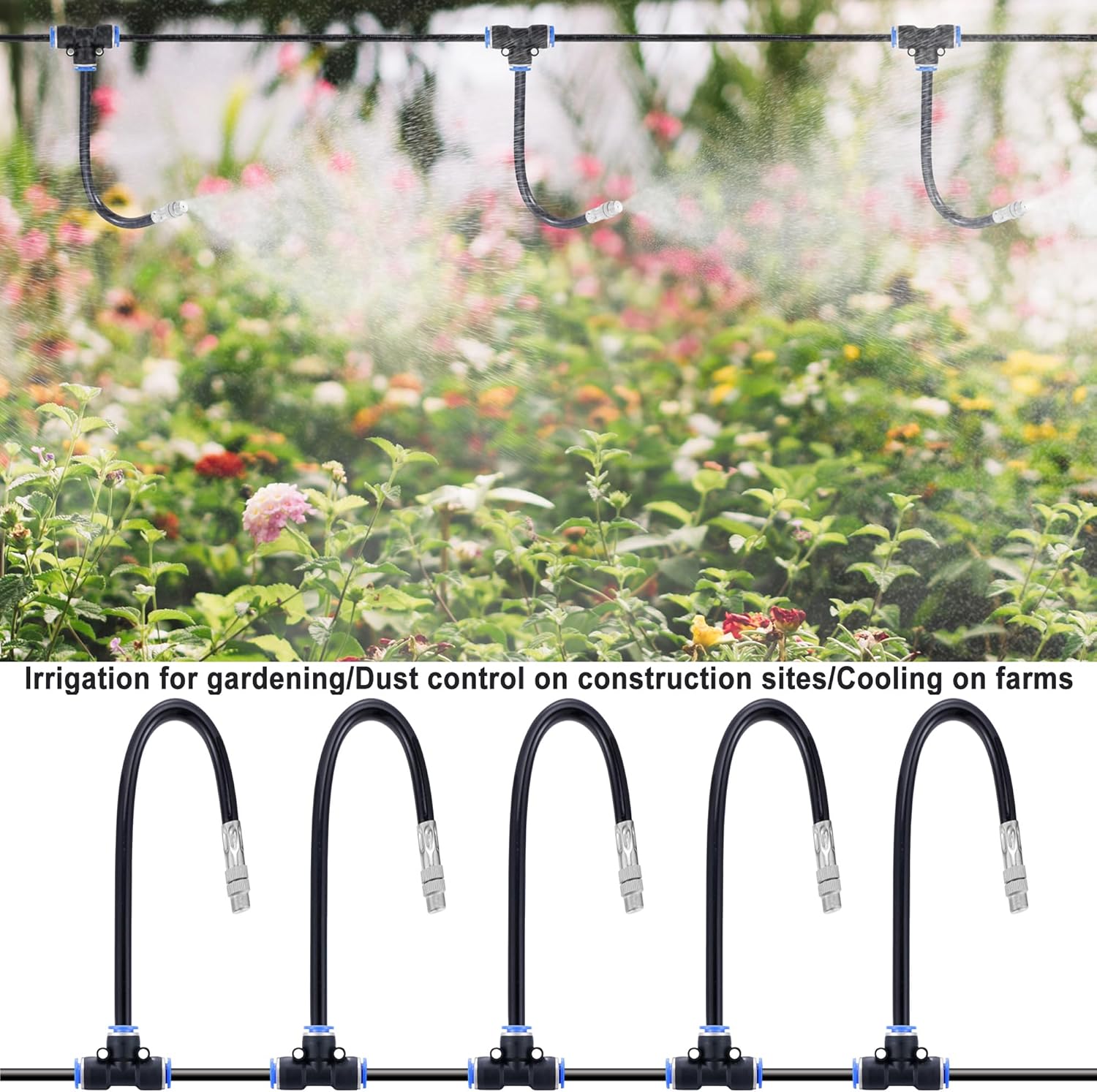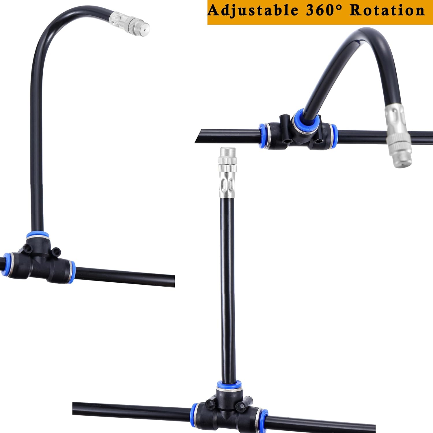 • 【Brass Misting Nozzles Tee with 8inch Built in Hose】: Made of premium brass, Mornajina Brass Misting Nozzles Tee with 8inch built in hose can be bent and fixed at 360 degrees, very convenient to adjust the place to be sprayed and specify the direction. And these misting nozzle tee thread sprayer with replacement heads equipped with leak proof self sealing o ring, no tape or sealant is required.