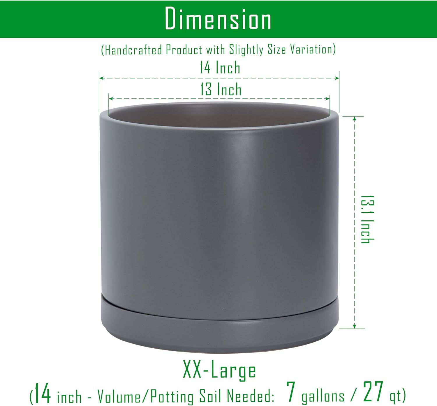 • XXLarge 14 Inch Planter Pot: 14" Diameter x 14" H.