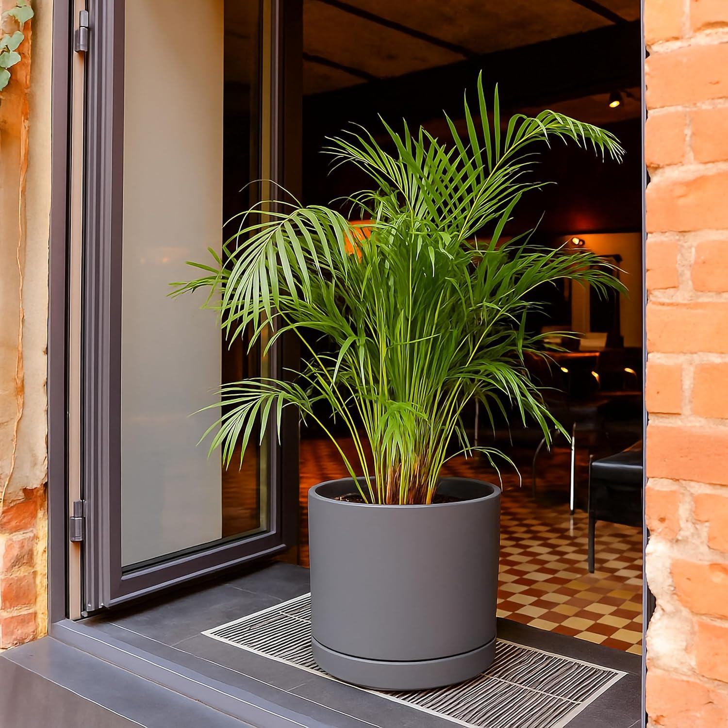• Simple, elegant, and modern cylindrical straight round planter pot with saucer and drainage hole.