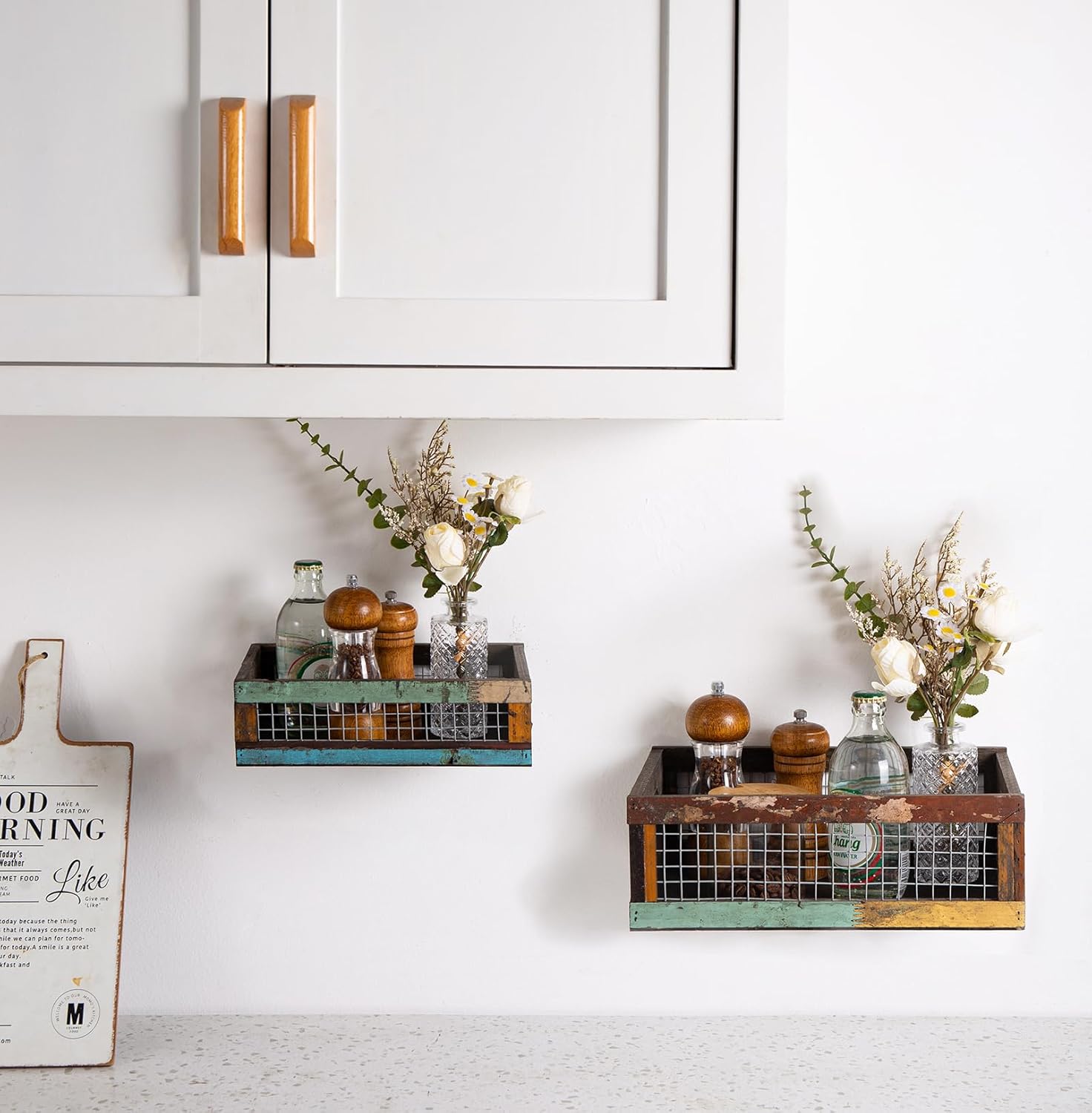 • SUPERIOR QUALITY – Crafted from solid reclaimed wood with wire mesh structure, these countertop crates are sturdy and durable that suitable for long-term use in your family. They are stackable and nested for easy storage and save your space, they can even be used in the drawers or on the walls.