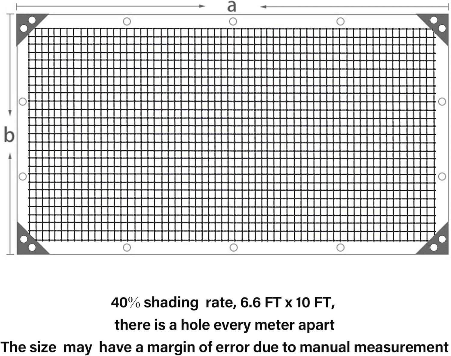 • 40% Sunshade with Breathable Design: With its 40% shading rate, this mesh tarp effectively reduces sunlight exposure while allowing airflow. It creates a cooler, more comfortable environment, preventing plants from wilting and providing a relaxing space for patio or outdoor activities.