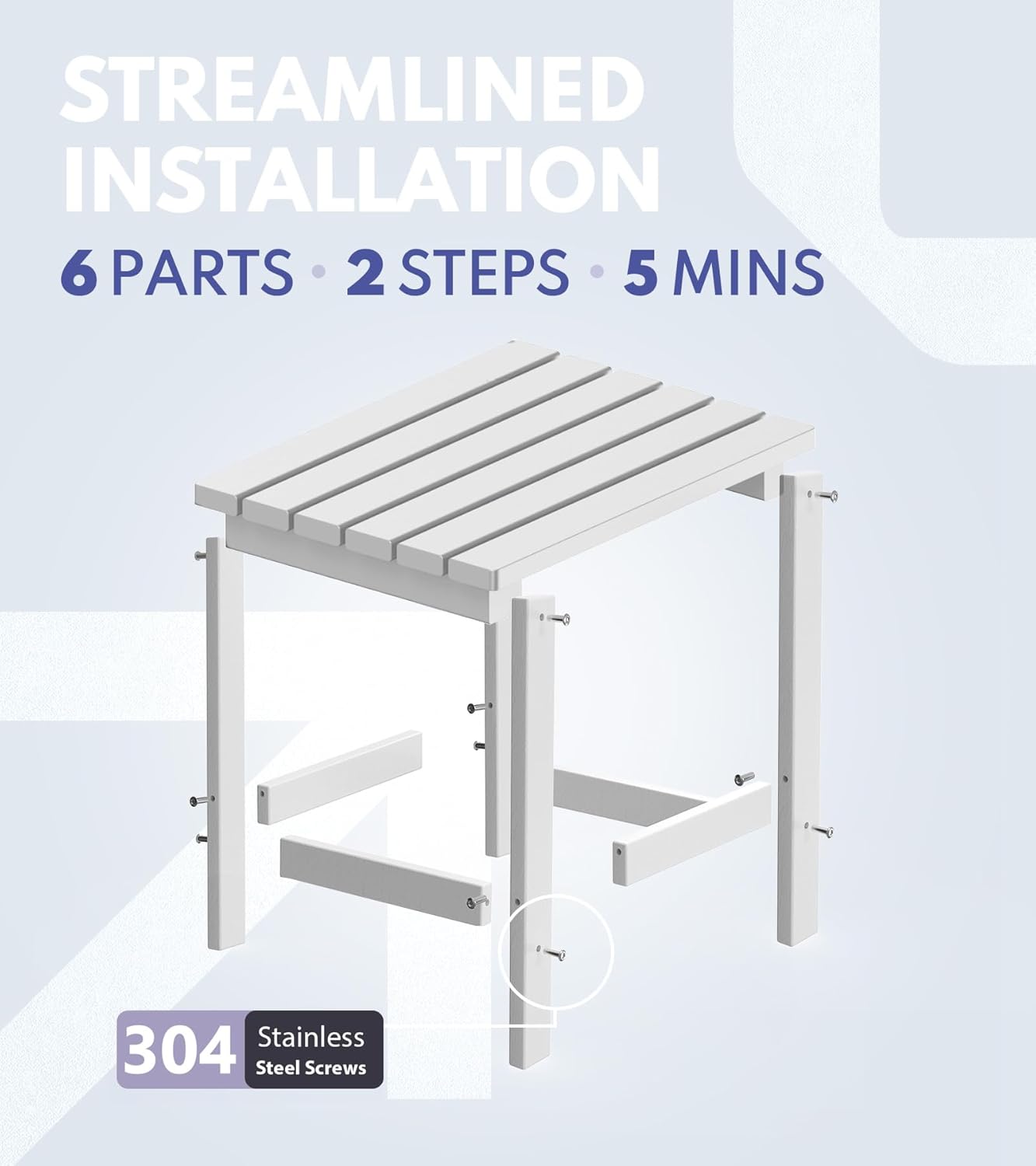 • 【Easy to Assemble & Easy Maintenance】The outdoor side tables for patio is easy to assemble with clear instructions and necessary hardware. The installation is effortless, safe, stable, and will not easily fall off. The small outdoor table requires no painting, staining, waterproofing, or similar maintenance. You can clean easily with soap, water, a soft-bristle brush or sanding sponge.