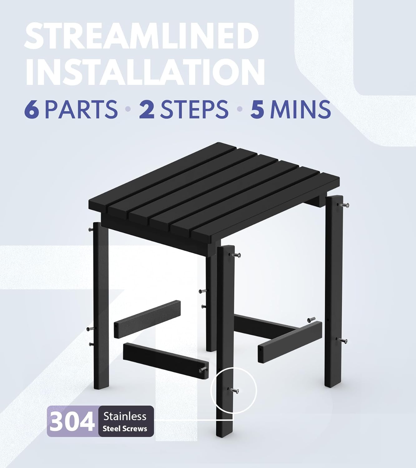 PASAMIC Adirondack Square Side Table, HDPE Outdoor Side Tables, Weather Resistant End Table for Patio, Backyard, Pool, Indoor Companion, Beach, Easy Maintenance (Black)