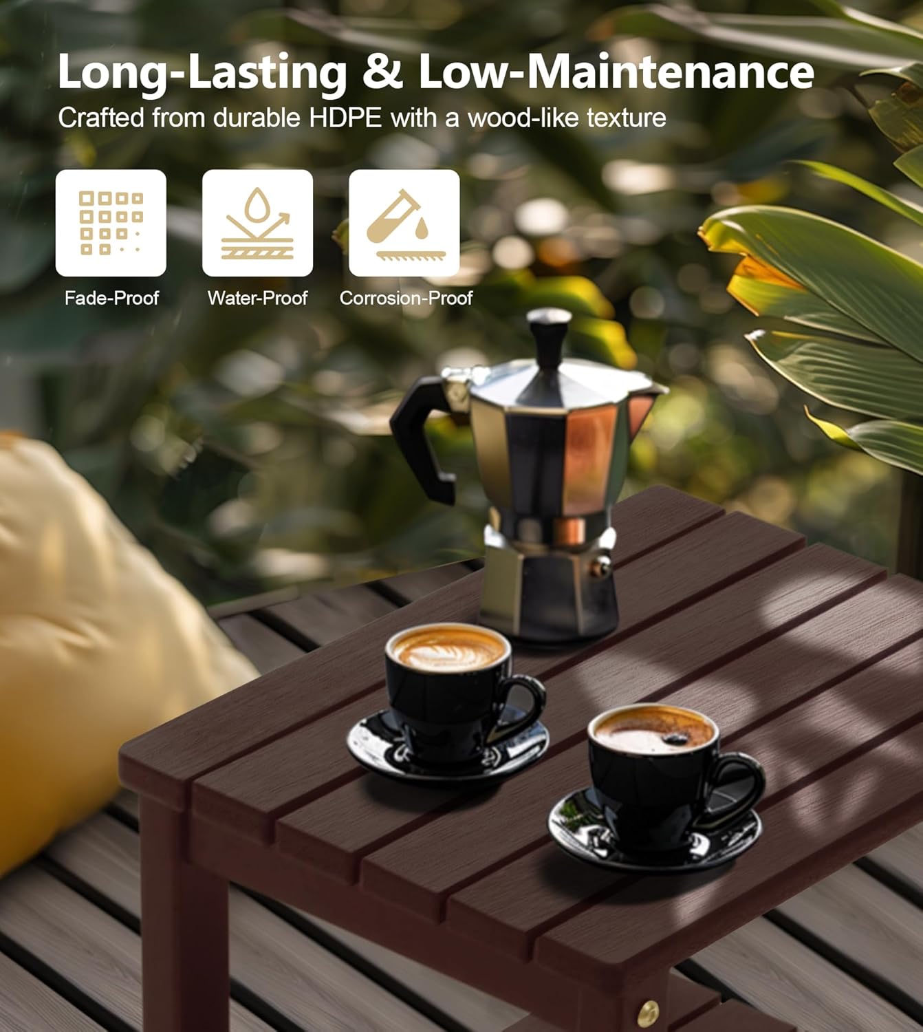 PASAMIC 2-Tier Adirondack Square Side Table, 17" HDPE Outdoor Side Tables, Weather Resistant End Table for Patio, Backyard, Pool, Indoor Companion, Beach, Easy Maintenance (Brown)