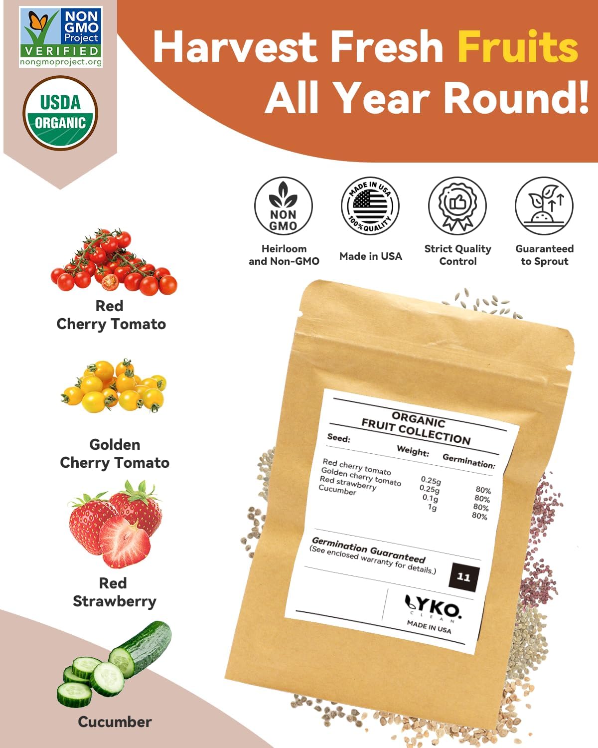 • HEIRLOOM & NON-GMO SEEDS MADE IN THE USA - All our seeds are grown and packaged in America. All seeds are organic, heirloom, and non-GMO. Our high germination seeds allow you to plant all year round, even in winter. Enjoy the fresh harvest of the fruits directly to your recipes