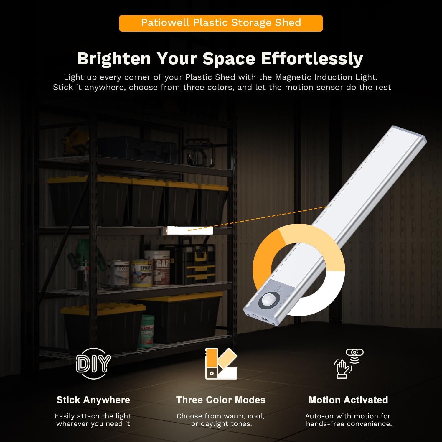 • Magnetic Induction Light: Magnetic Induction Light features a powerful magnetic base and motion sensor, providing bright, hands-free illumination for the shed. With 5-8 meters sensing range and three different lighting modes can be selected according to your needs