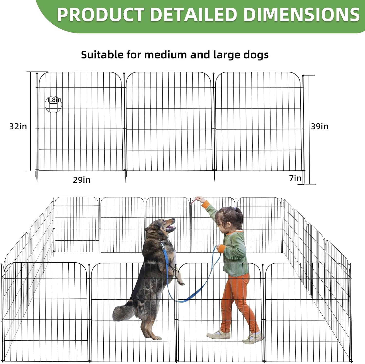 • 【Sturdy & Rustproof】Blingluck outdoor dog fence is made of thickened metal wire for added strength, this fence is built to last and not easy to crack or bend easily. The powder-coated surface is rust-resistant and tough enough to handle the outdoor wind and solarization, it can work for you for a long time