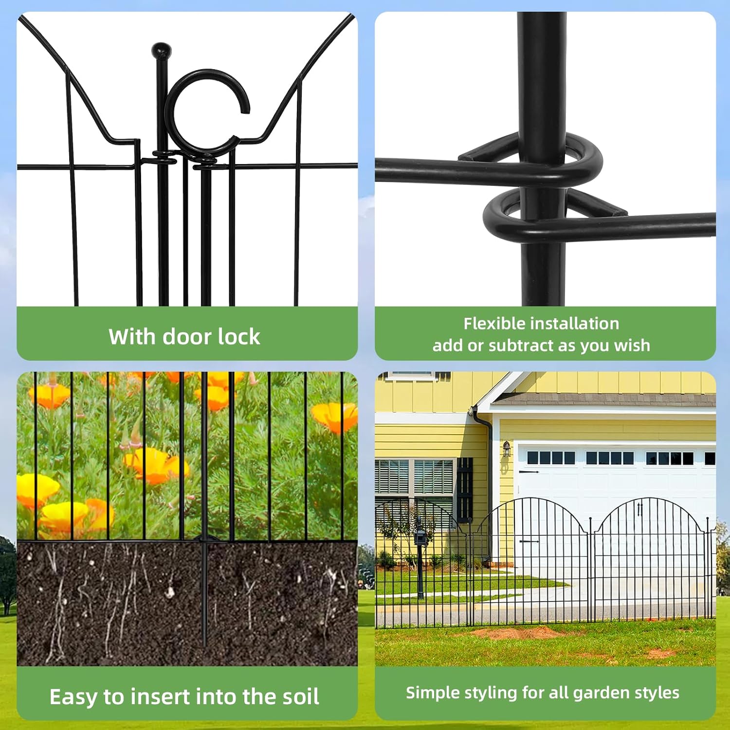 Decorative Metal Garden Fence with Gate Lock 10 Panels, 32in (H) x 23.6ft (L) No Dig Dog Fence Outdoor for Yard, Temporary Rustproof Metal Wire Rabbit Dog Garden Border Fencing for Patio