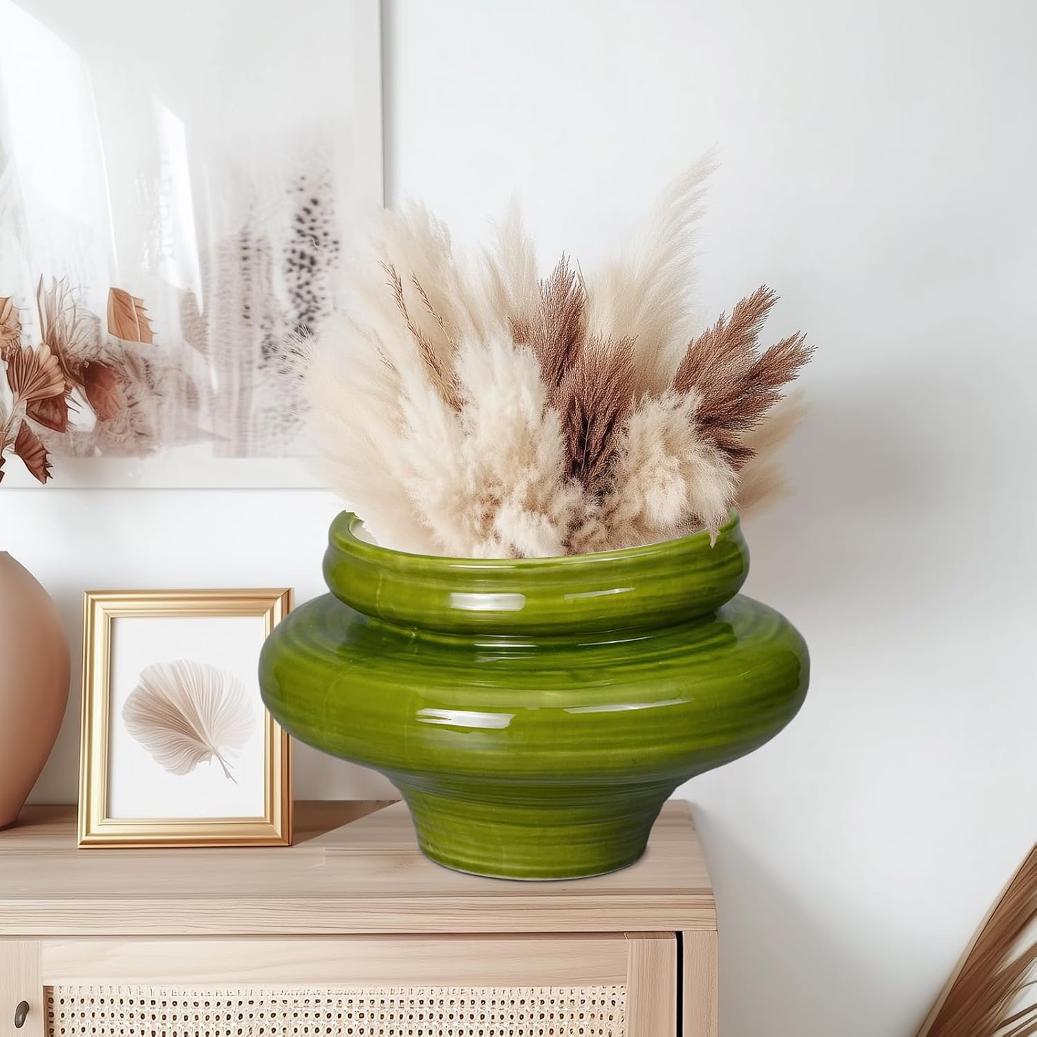 Ceramic Planters for Indoor Plants 11 Inch - Bonsai Plant Pots Outdoor, Large Planters for Indoor Plants, Green Planter with Drainage Hole, Flower Pot for Garden Decor, Gift for Women Men