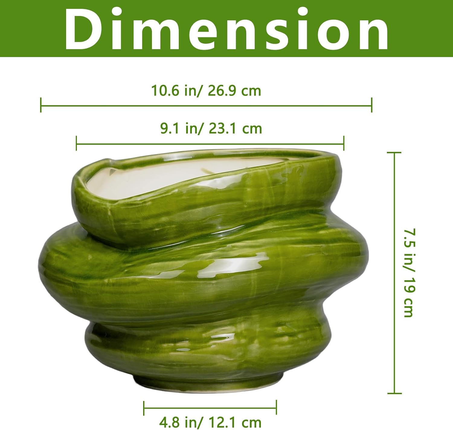 Ceramic Planters Bonsai 11 Inch - Planters with Drainage Hole, Flower Pots for Indoor Plants Outdoor Plants, Large Plant Pot for Home Decor, Gift for Men Women, Green