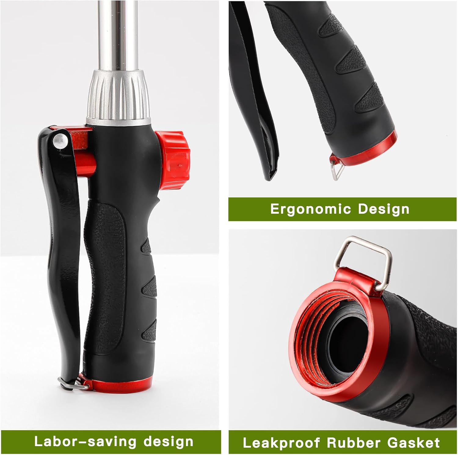 • Labor - saving Design. At the front bottom of the handle there is a hold-open clip for continuous spraying without tiring out your hand. This design of the hose wand is perfect for people with arthritis or disabilities