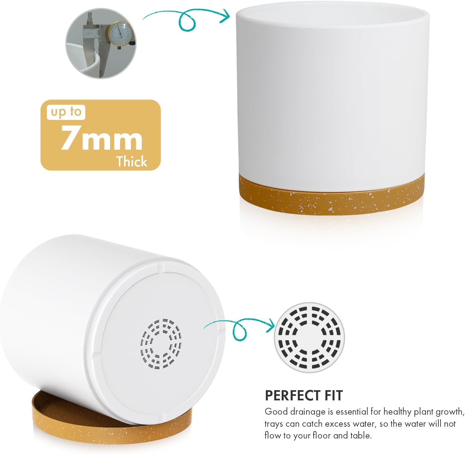 • 【Drainage Holes & Trays】 Excess water flows out of the drainage holes and plant pot saucers collect the overflow to prevent overwatering and flooding, this design allows the plastic planter to protect the plants and soil, keep the surrounding area dry and easy to clean