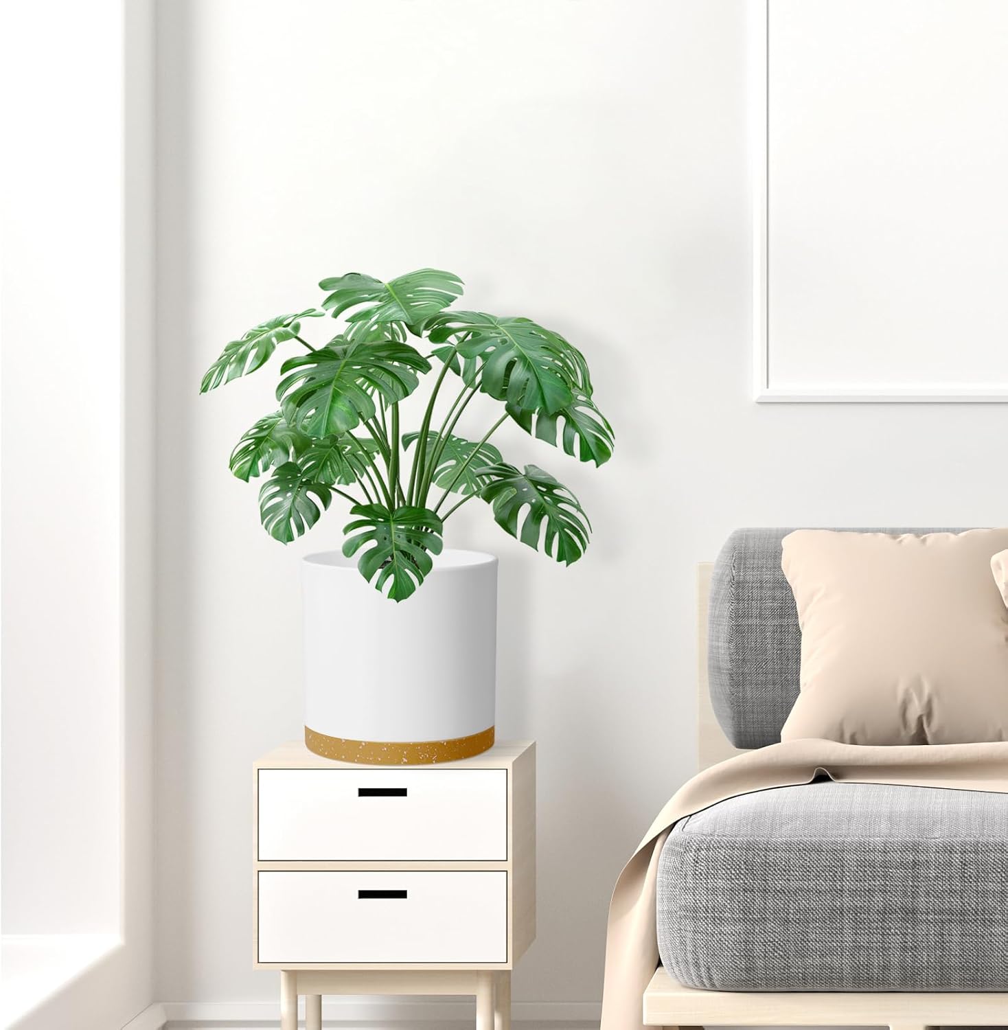 • 【Depth & Large】 10 inch large indoor plant pot with Dia: 10 in, Height: 10.6 in, tall plant pots with white with brown provide enough space to accommodate a variety of plants, offering flexibility for small to medium-sized greenery and flowers