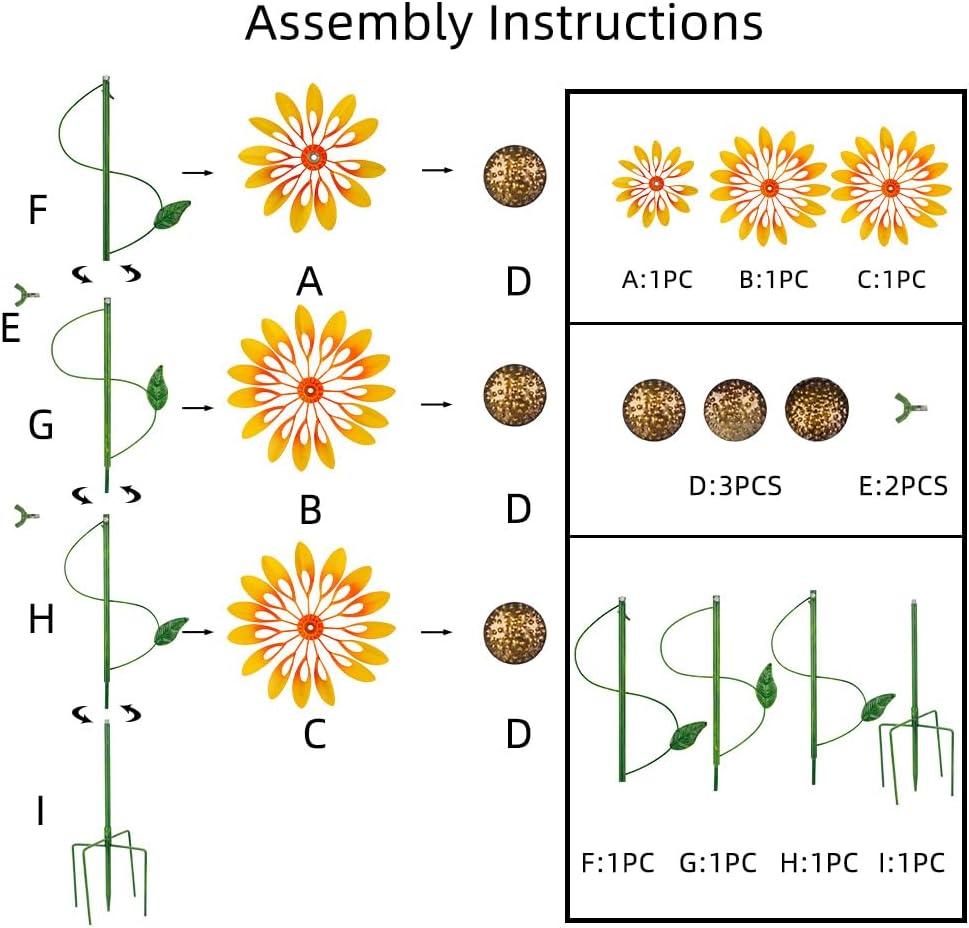 • All Weather Resistance:The sunflower wind spinner has long-lasting waterproof and rust resistant coating, which can be used in various weather conditions