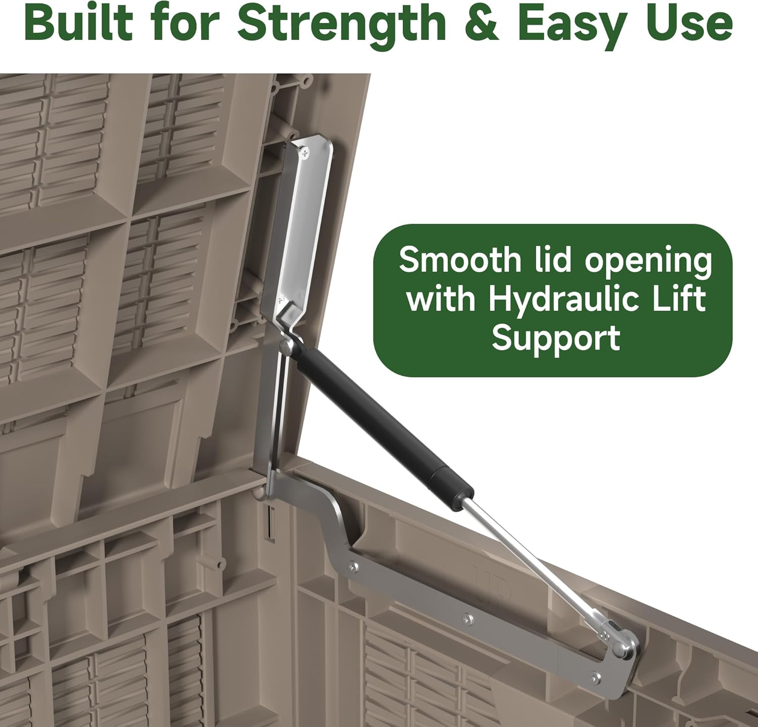 • STURDY AND RELIABLE BUILD:Designed with internal reinforcement, this deck box offers superior strength and stability compared to similar products. The robust panel construction and precise assembly help maintain its shape over time.