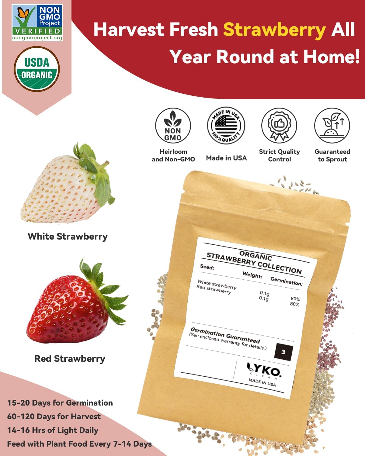 • HEIRLOOM & NON-GMO SEEDS MADE IN THE USA - All our seeds are grown and packaged in America. All seeds are organic, heirloom, and non-GMO. Our high germination seeds allow you to plant all year round, even in winter. Enjoy the fresh harvest of the strawberries directly to your recipes