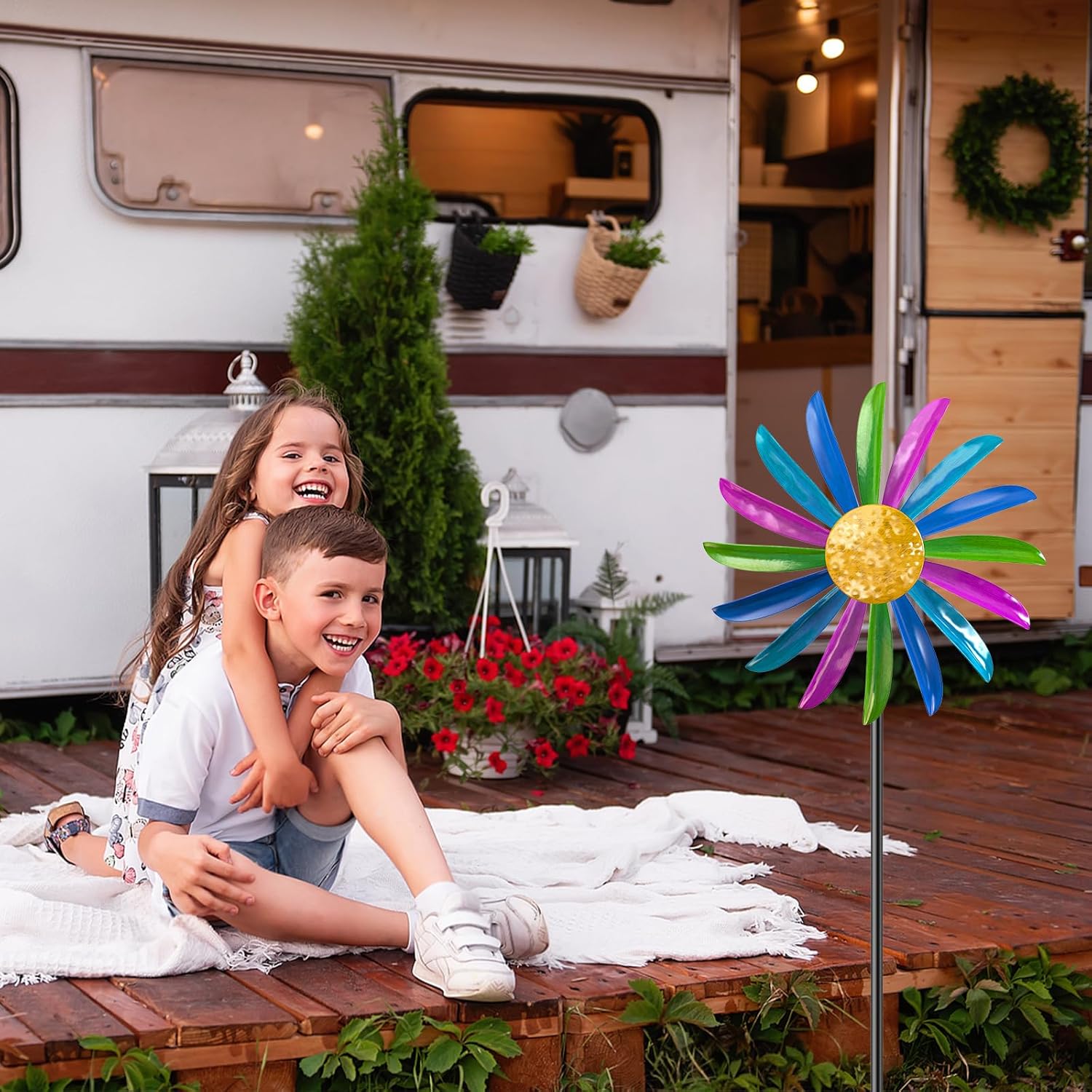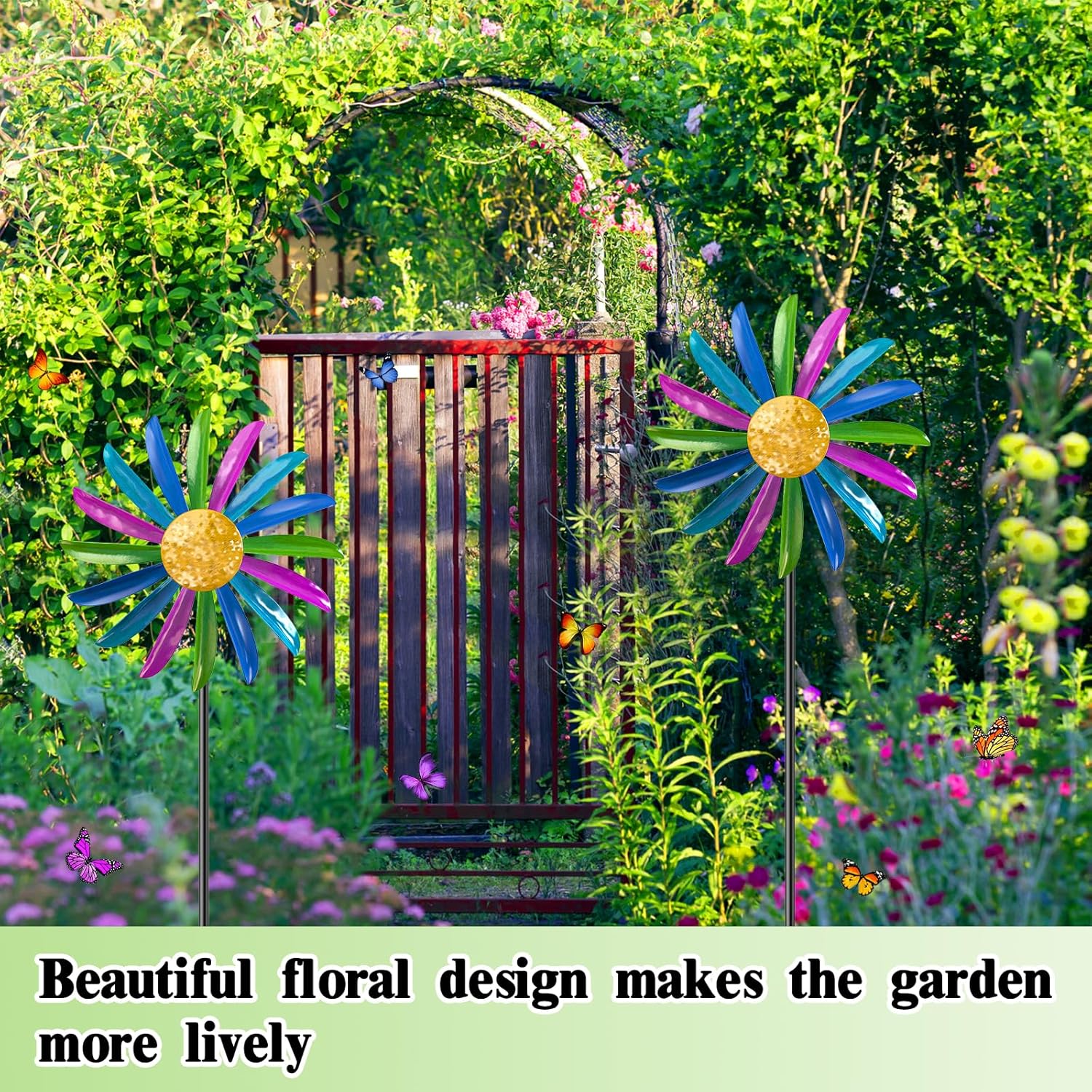 • Unique Design: Wind spinners is composed of bright flower shapes. The colourful scheme and small size can make our kinetic wind spinners well decorate your outdoor space, Place the garden wind spinners in your garden to create a unique style that is eye-catching