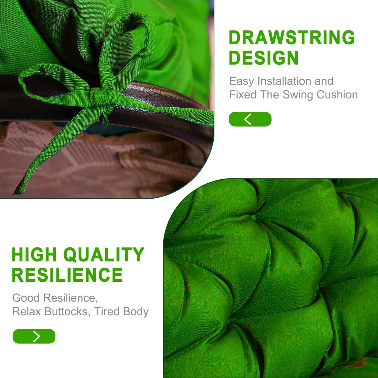 • 【Stylish Backrest and Ties】Swing cushions for outdoor swing adds with backrest dot positioning design, relax buttocks, increase strength.So enough to support your tired body ! Attached 6 corner ties keep the seat cushions securely fastened to your outdoor patio bench. It will greatly help you enjoy the afternoon sun leisurely.