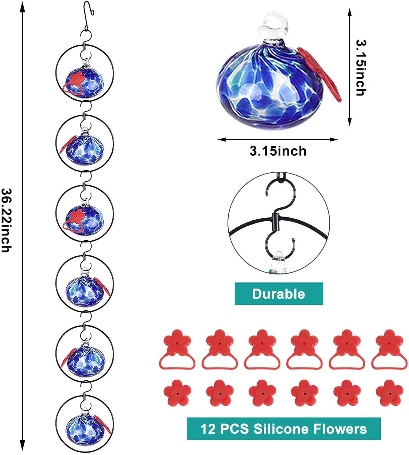 • 【Attract more hummingbirds】 Flexible modular combination feeder provides 6 feeding ports.Independent detachable hooks allow free combination and hanging in gardens,backyards, windows,decks, front porches and anywhere hummer birds appear.