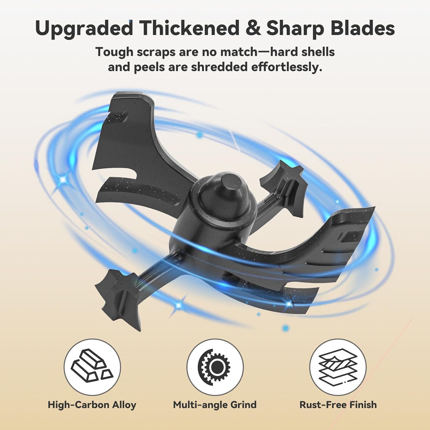 • High-Efficiency Waste Reduction: With an upgraded high-temperature drying and grinding system, electric composter reduces waste by up to 90% in just 2.5 hours. The reinforced, sharp blades effortlessly handle tough waste like pork bones and fruit/vegetable scraps, making composting easy.