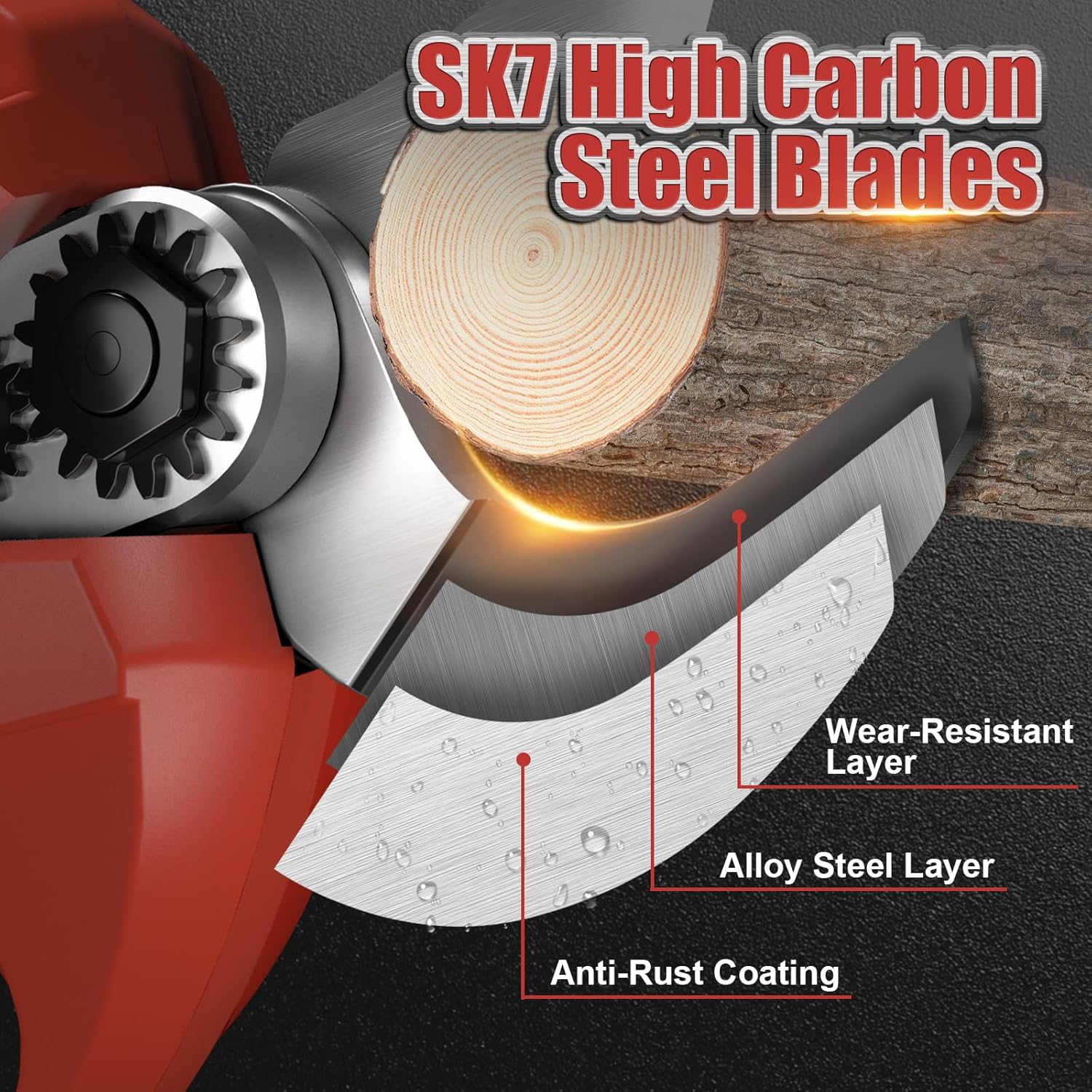 • UP TO 50mm(1.96inch) Cutting Diamter: Our pruning shears utilized SK7 high carbon steel blades, the electric tree trimmer effortlessly slices through branches with a thickness of up to 50mm(1.96inch). NOTE: long-press the power button and listen for a 'Beep' to turn on the device successfully.