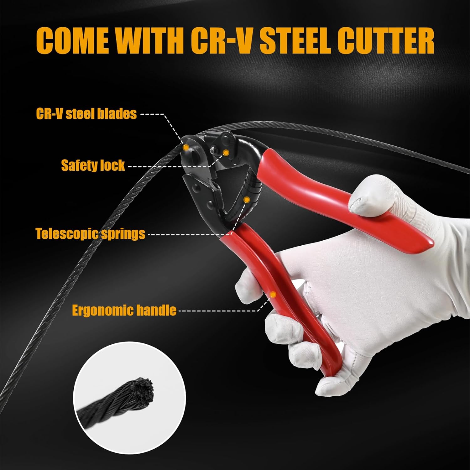 • Easy to store and use: The aircraft cable is equipped with a spool, which is convenient for retracting and releasing the line. The surface of the steel cable is smooth and highly polished. The included cable cutter allows you to easily customize the required length, cutting smoothly without any sharp edges.