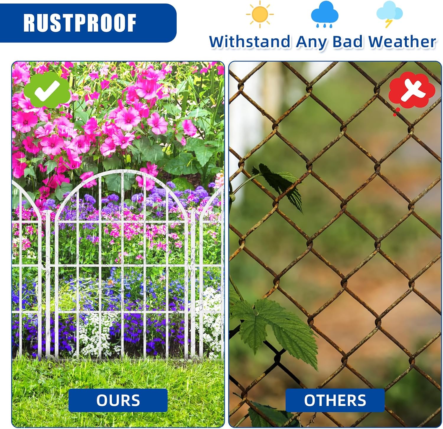 • ARCHED DECORATIVE FENCE - Classic arch design, more beautiful look, decorating your garden, yard, patio landscape, dress up your plants, flower bed, create clear borders and areas for plants, vegetables, garden, lawn, flower bed edging, keep small animals out of your garden, prevent the dogs from digging these areas