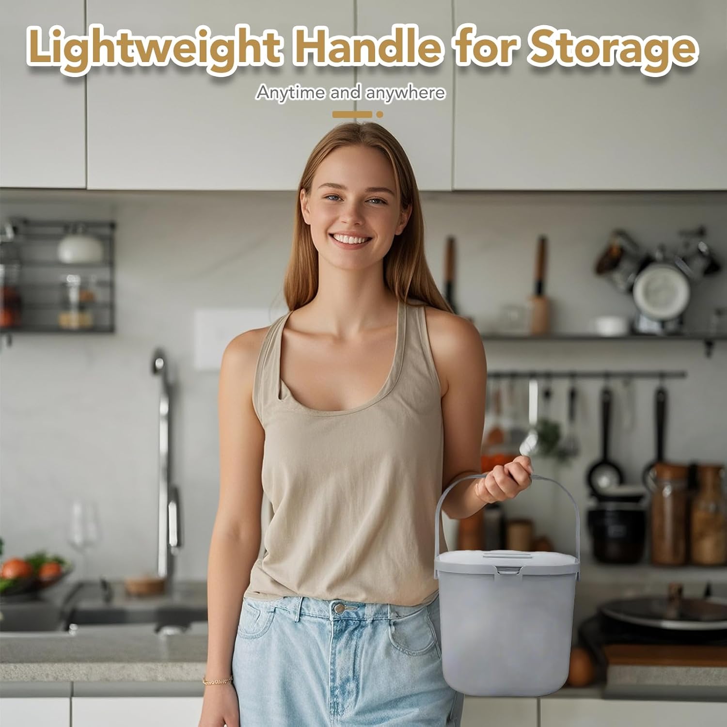 • Convenient Handles:This compost bin kitchen includes handles on both the bin and inner filter for effortless lifting, easy waste disposal, and convenient storage when needed.