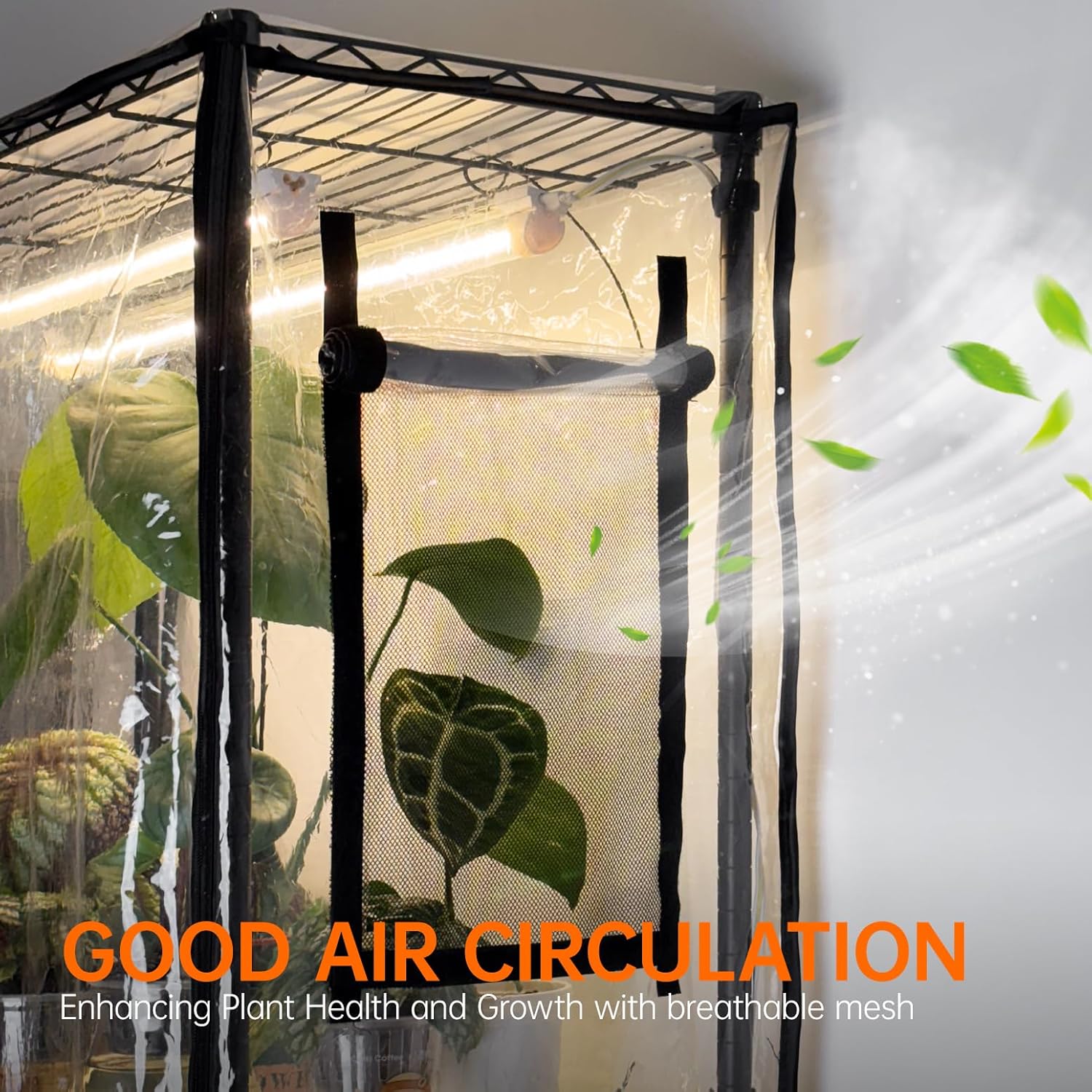 • EVA Greenhouse Cover with Roll-Up Zipper Door and Side Windows - The 7.87 mil thick greenhouse cover is sturdy, with double the thickness to ensure that the greenhouse maintains the temperature and humidity needed for plant growth. Its high light transmittance allows for easy monitoring of plant growth from outside. The roll-up zipper door provides convenient access for watering and fertilizing, and the four side windows promote optimal ventilation