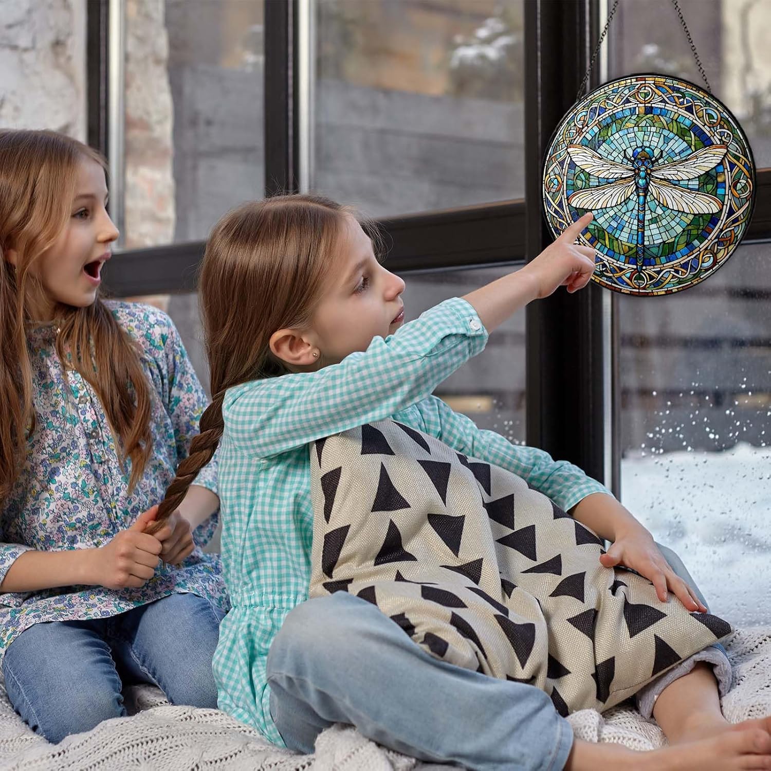 • 【Stained Glass Window Hanging】The colored glass sun catcher can effectively capture sunlight with its excellent light transmittance, and transform the light into colorful light and shadow effects indoors.Sun catchers indoor window can not only add sunshine color to the family, but also can be used as a glass decoration to make your home more beautiful