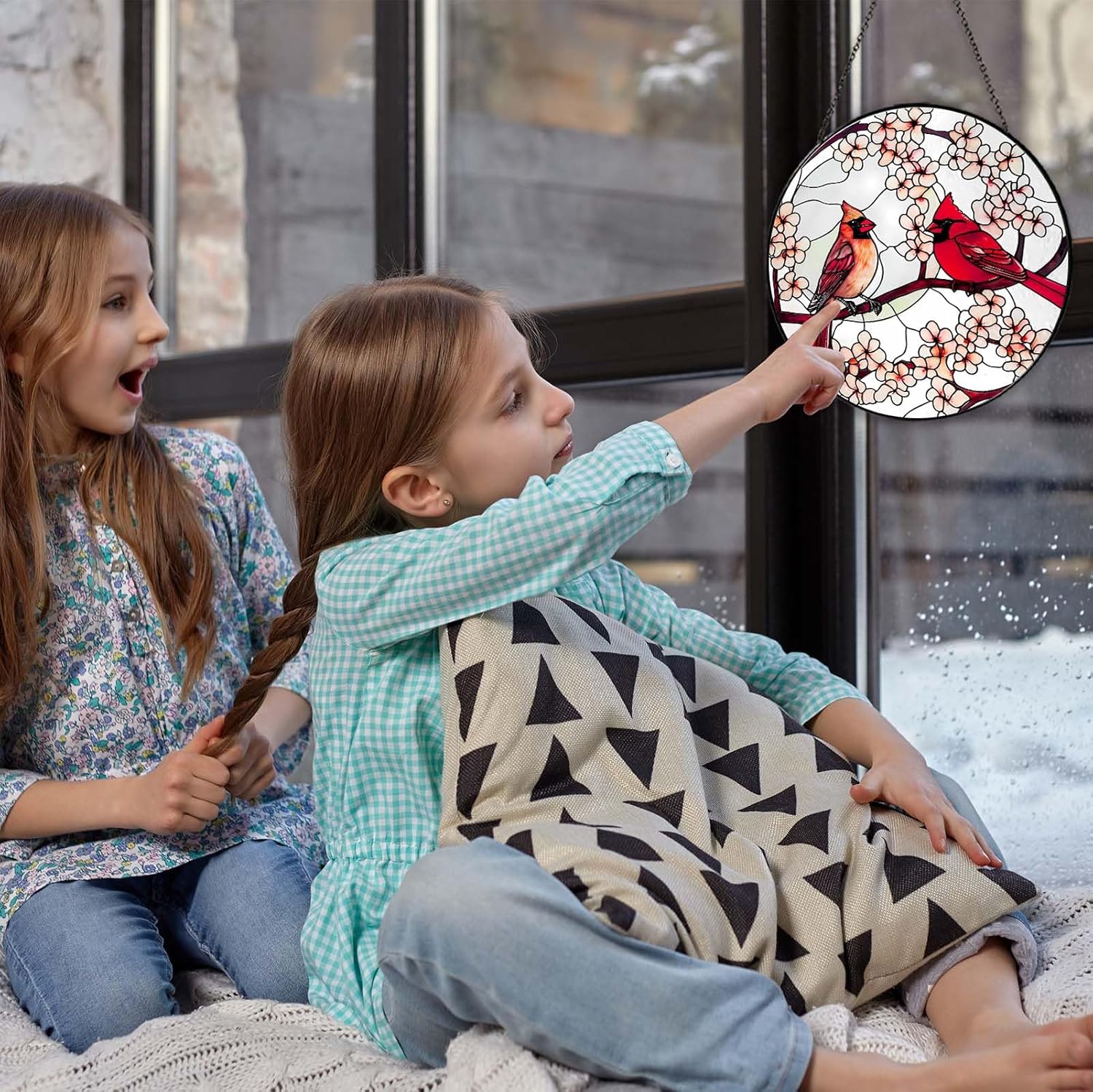 Cardinal Sun Catcher RVEAFA Stained Glass Window Hanging Cardinal Decor Gifts for Women Handmade Sun Catcher Decoration for Garden Home Housewarming Gifts Mother Day