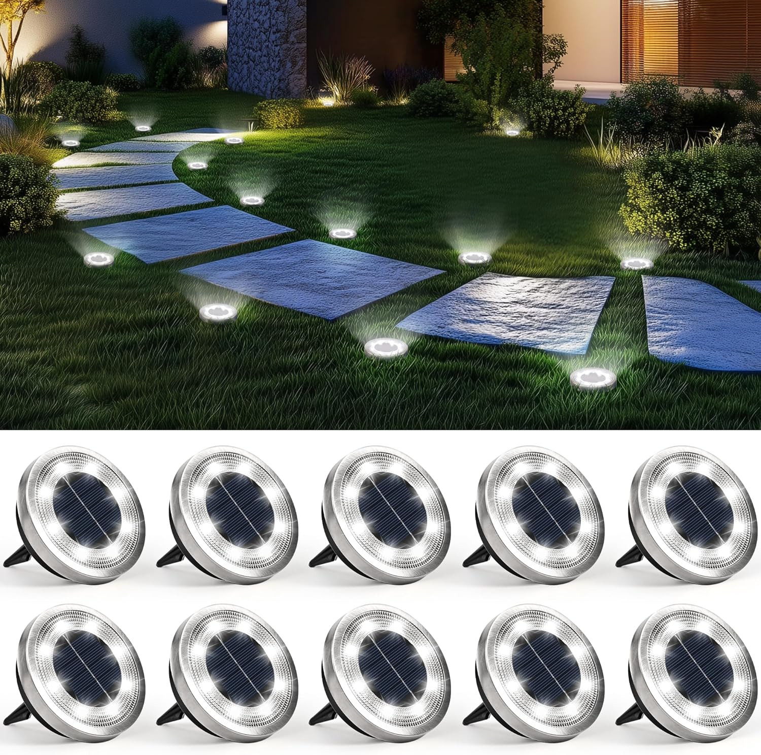 SOLPEX 10 Pack Solar Ground Lights Outdoor Waterproof, Solar Powered Pathway Lights, Landscape Lighting for Garden Walkway Driveway Backyard Decor (Cool White)