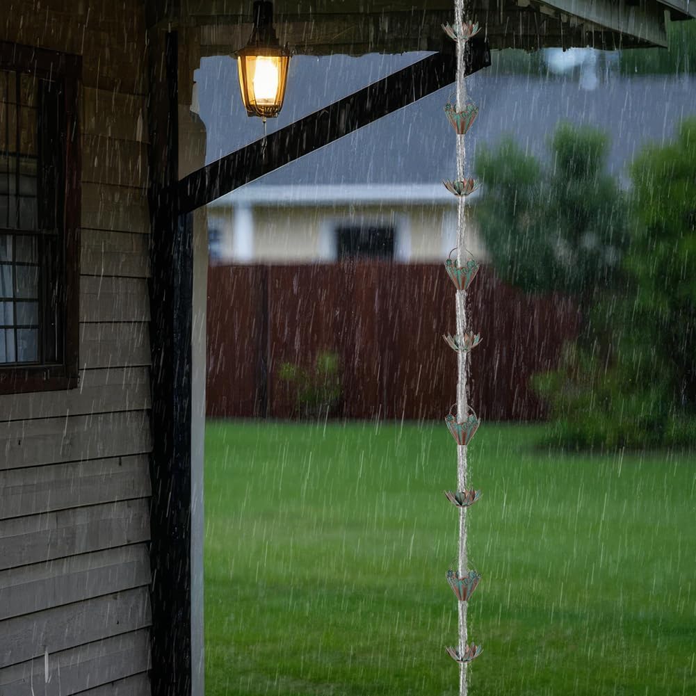 • Alternative to Traditional Gutters: The rain chain can effectively direct water downward, an excellent option instead of gutters. Rainwater flowing down the rain chain creates a soothing visual and auditory effect