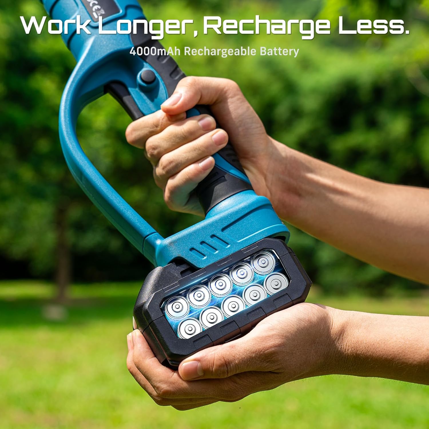 • 【Lightweight & Ergonomic for Comfort】At just 2.85 lbs (6.2 lbs with pole), these cordless pruning shears are built for comfort. The non-slip rubber grip reduces hand strain, and the shoulder strap eases back discomfort, ensuring you can prune longer and comfortably