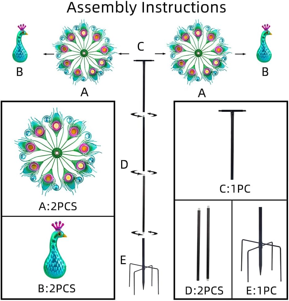 • Outdoor Wind Spinner:This windmill adopts vivid peacock design that spins when the breeze blows, adding color and vitality to your garden, patio, lawn