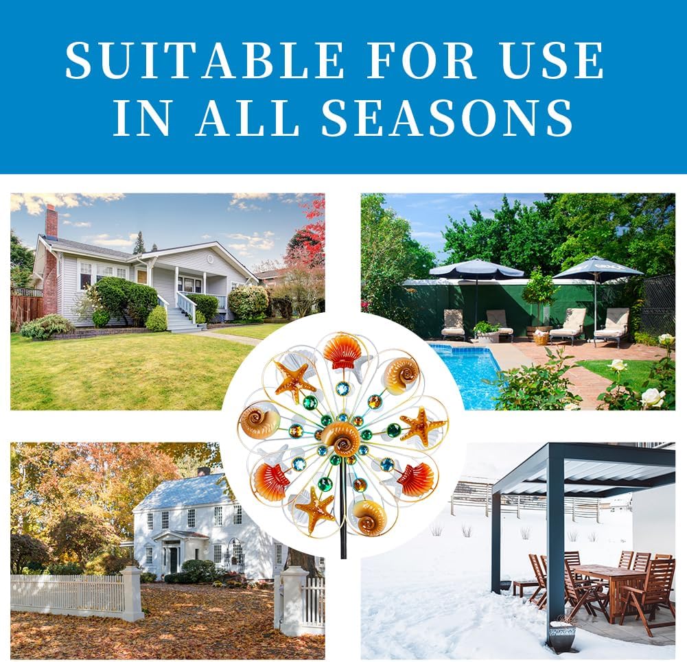 • Super Construction:This wind spinners outdoor has a solid metallic construction with easy spinning, blades can smoothly rotate on sealed bearings, giving the illusion of being by the sea