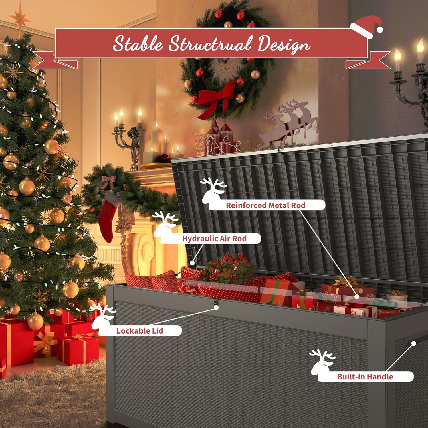 • 🏕️【Convenient Hydraulic Lid System】Featuring a hydraulic piston system, the lid of this outdoor storage bin opens effortlessly and closes softly. The user-friendly design ensures safe and smooth operation, making it ideal for everyday use.