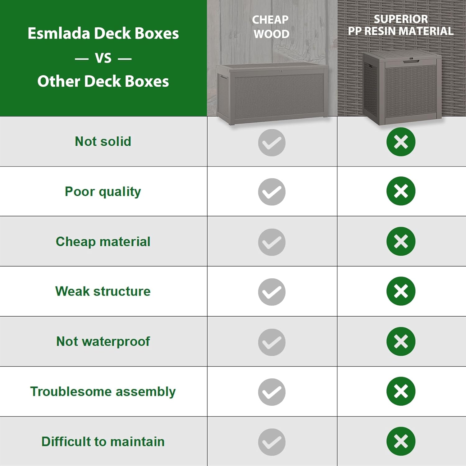 • 🏕️【HIGH QUALITY MATERIAL】This outdoor storage bin is made of high-density PP resin with excellent waterproof, sunproof and dustproof performance to withstand all kinds of harsh weather, while the rattan-like texture surface design adds a modern touch to your outdoor space.