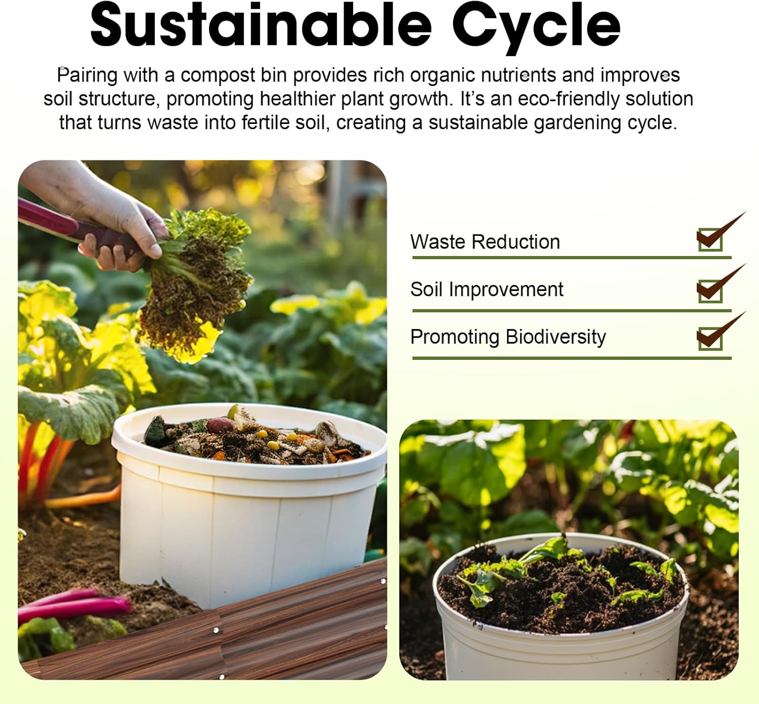 • 【Convenient & Organic】The height of the galvanized raised garden bed greatly reduces the burden of bending over to plant, making it easier for you to perform routine maintenance such as watering, fertilizing and weeding. In addition, our beds can be used with compost bins to effectively utilize kitchen waste and enjoy an organic lifestyle!