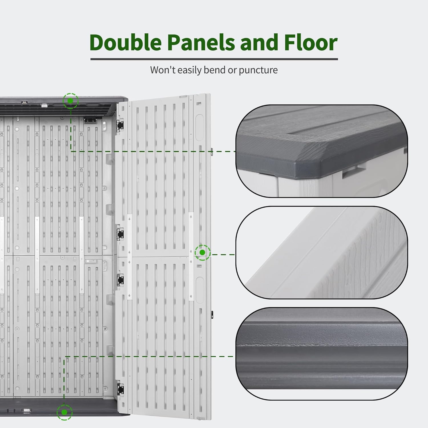 • Double Panels: The shed outdoor storage features double panels that won't easily bend or puncture