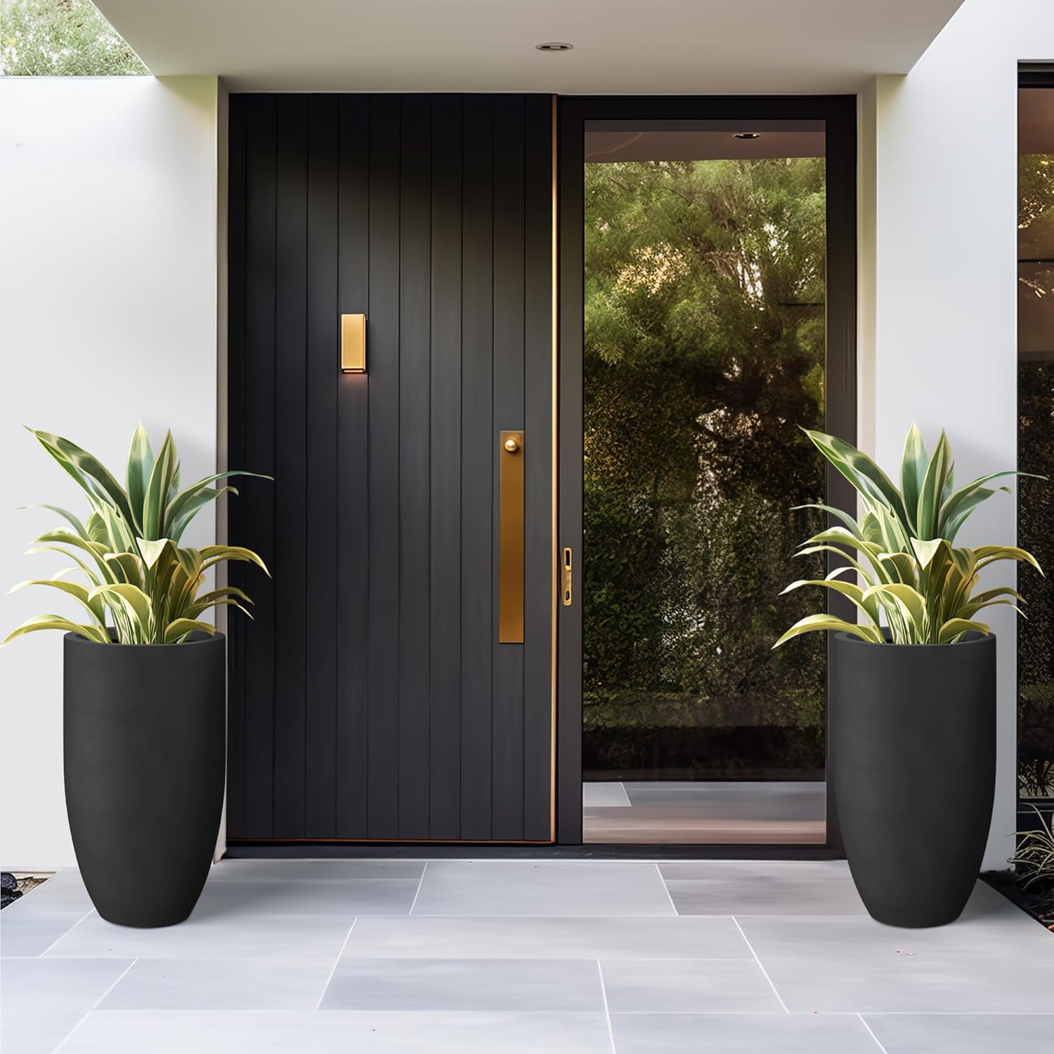 Kante 24 Inch Tall Round Concrete Planter, Large Indoor Outdoor Plant Pots with Drainage Hole and Rubber Plug, Modern Decorative Garden Pots for Home Patio Porch, Black