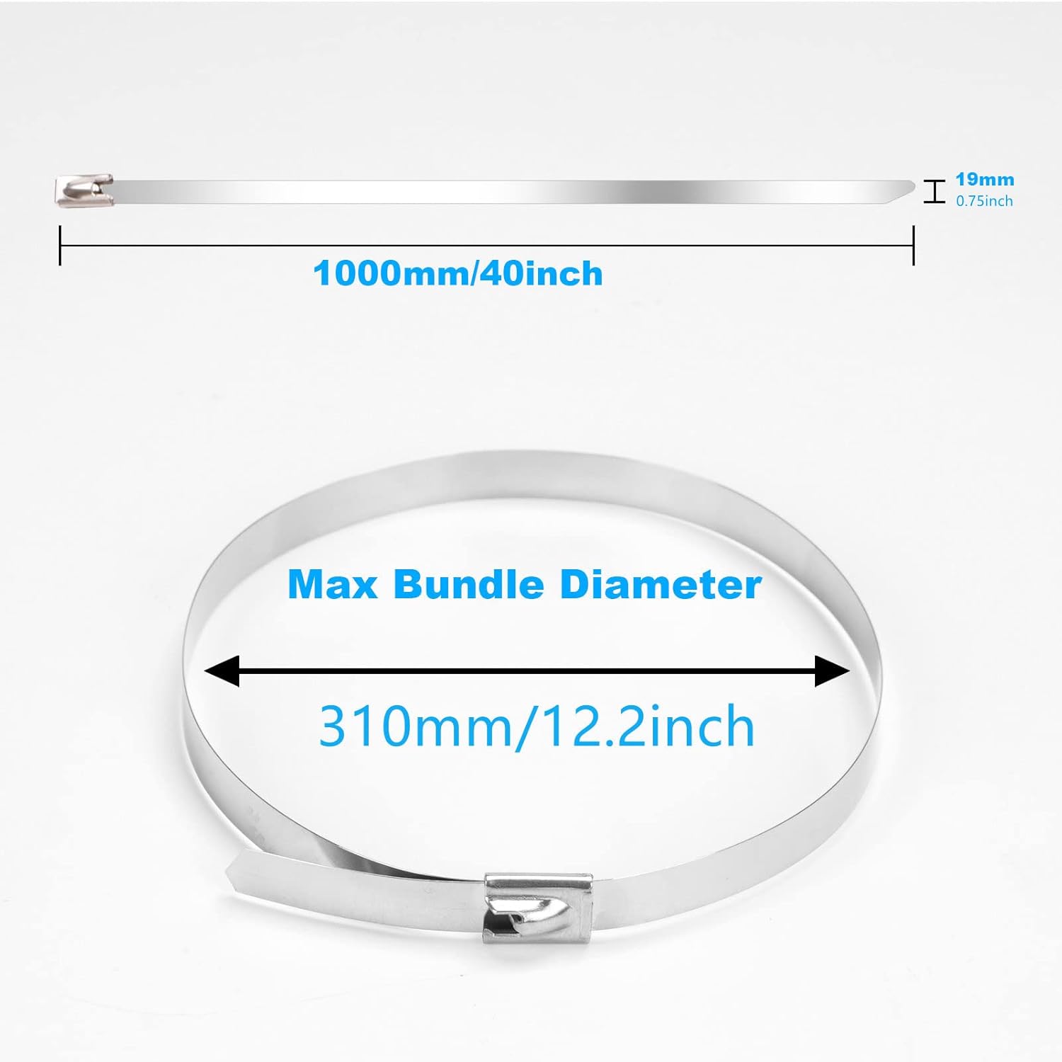 Metal Zip Ties Heavy Duty Outdoor, 40 Inch 880 Lb Wide Stainless Steel Zip Ties Self-locking Metal Cable Ties Suitable for Exhaust Wrap, Fence, Farms, Pipes, Cables, as well as Outdoor binding 20PCS
